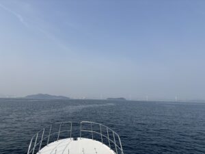 現場作業をするスタッフの風景・管理艇を、素敵に描いてくださいました。