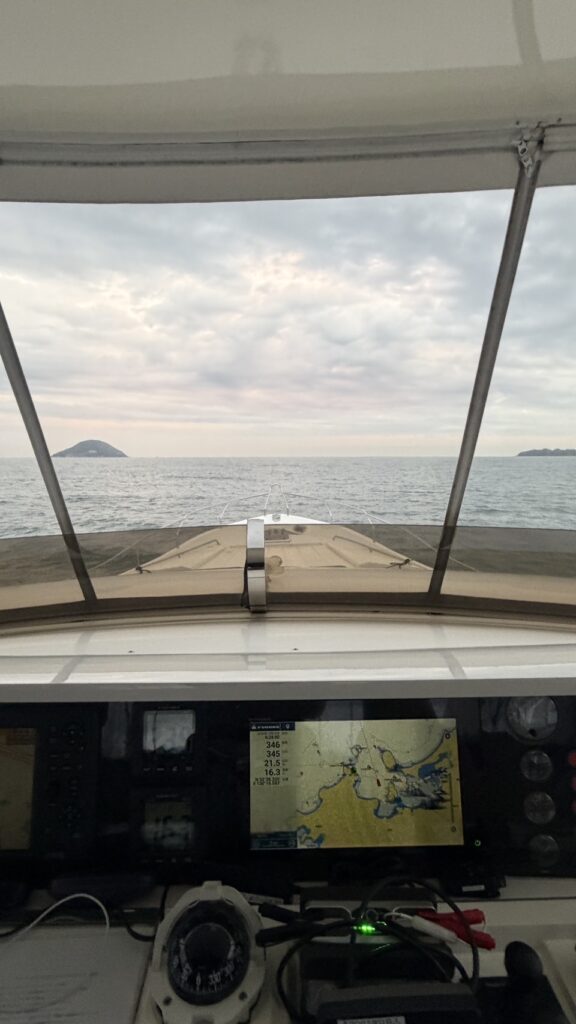 明日の停泊港は、本州最南端・潮岬を通過する際の海況を見ながら、