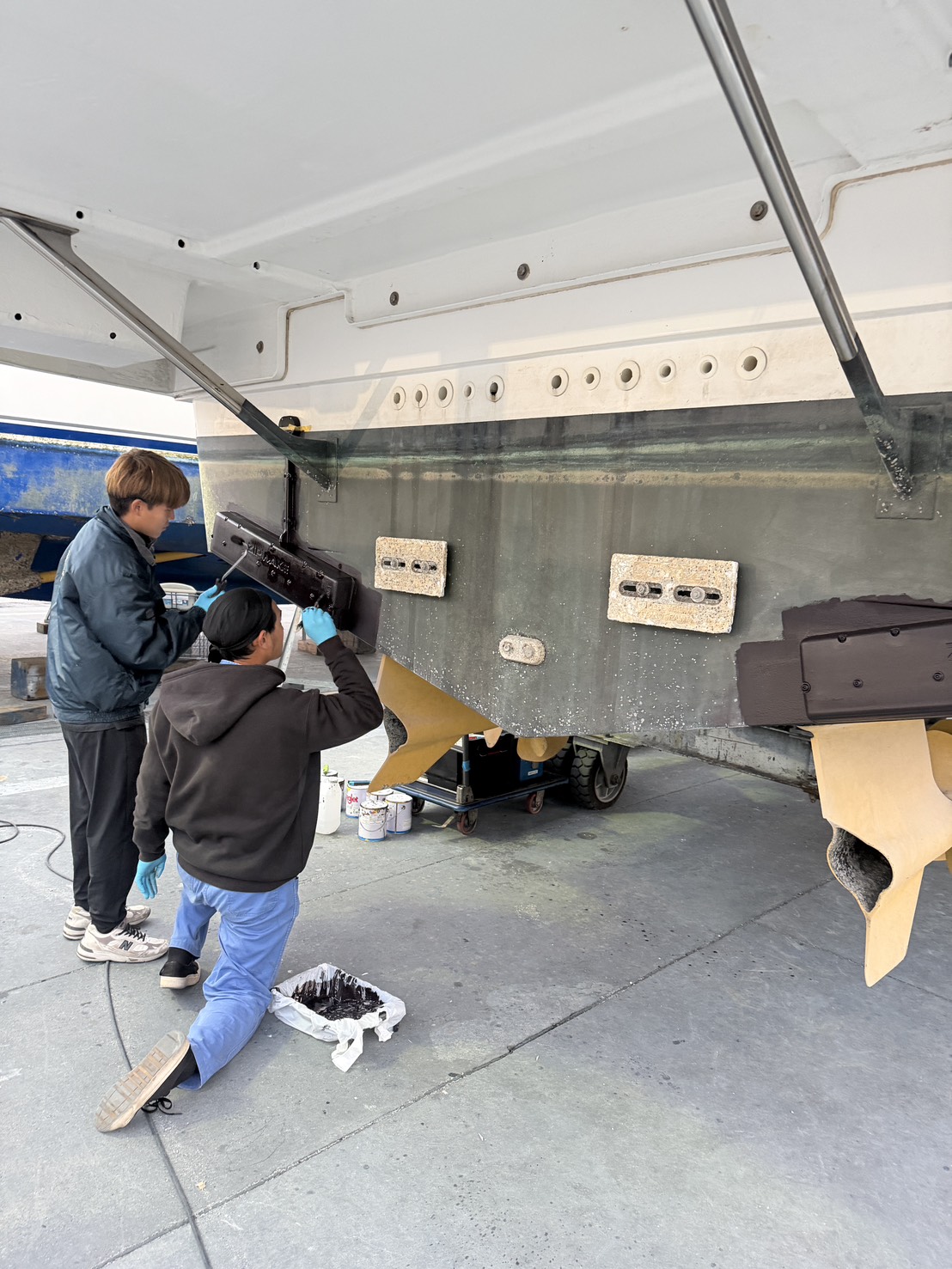 硬化後に船底塗料を2回塗り重ねて仕上げました。
