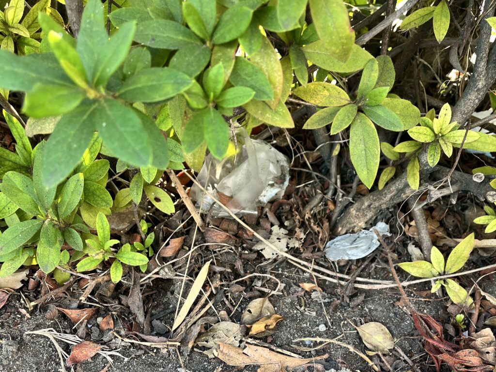 煙草の箱、吸い殻、ビニールゴミなど結構な数の落とし物を見つけました。