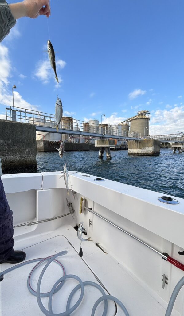 出港して間もなく、幸先よくアジの群れに遭遇!!