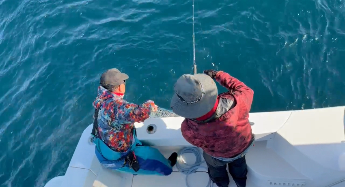 午前中は潮の流れに乗りポツリポツリとモンゴウイカが釣れていましたが、