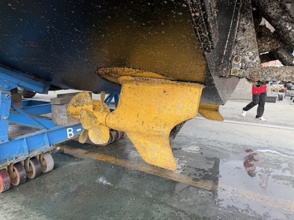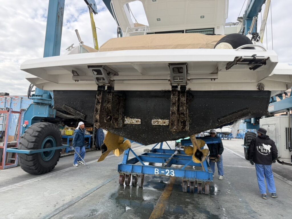 本日は上架・貝落とし・高圧洗浄までを実施しました。