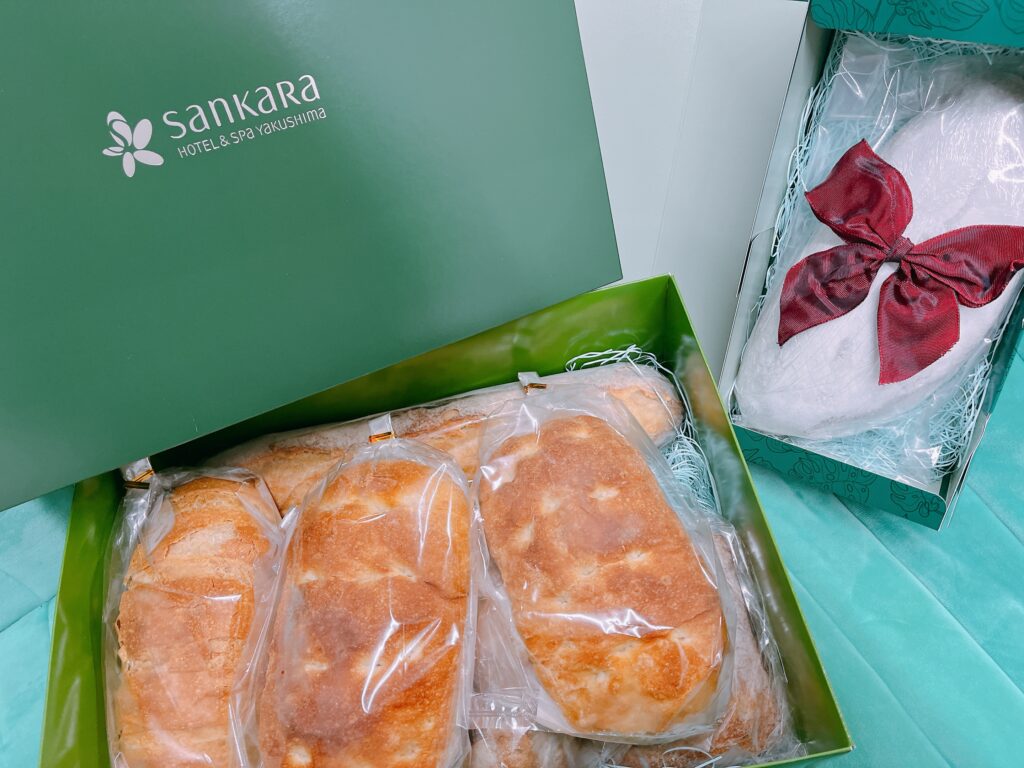 屋久島にある 「サンカラ」ホテルのパン詰め合わせとシュトーレン、