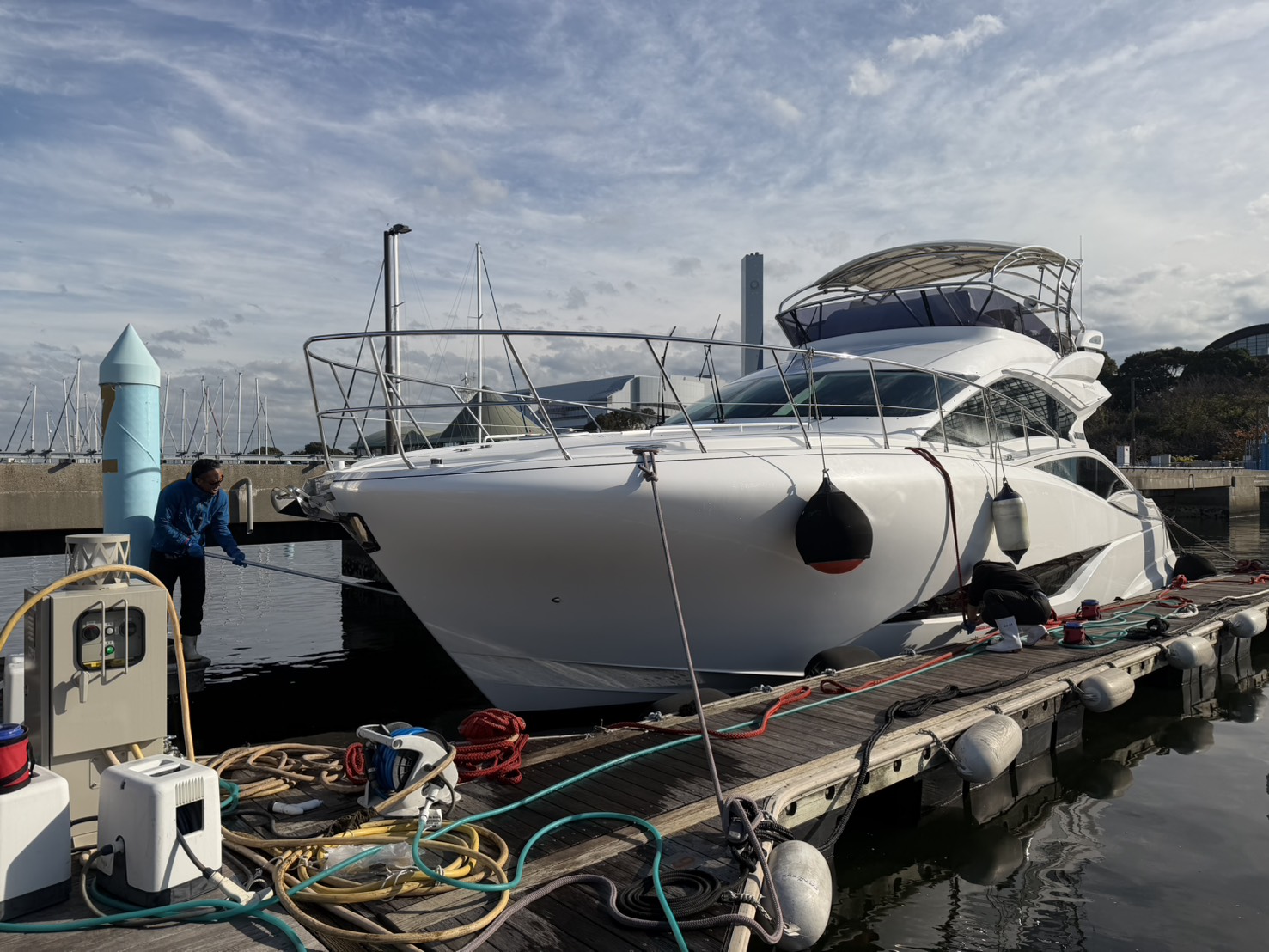 船体メンテナンス契約をいただいているオーナー様の管理艇の船体メンテナンス作業を行いました。
