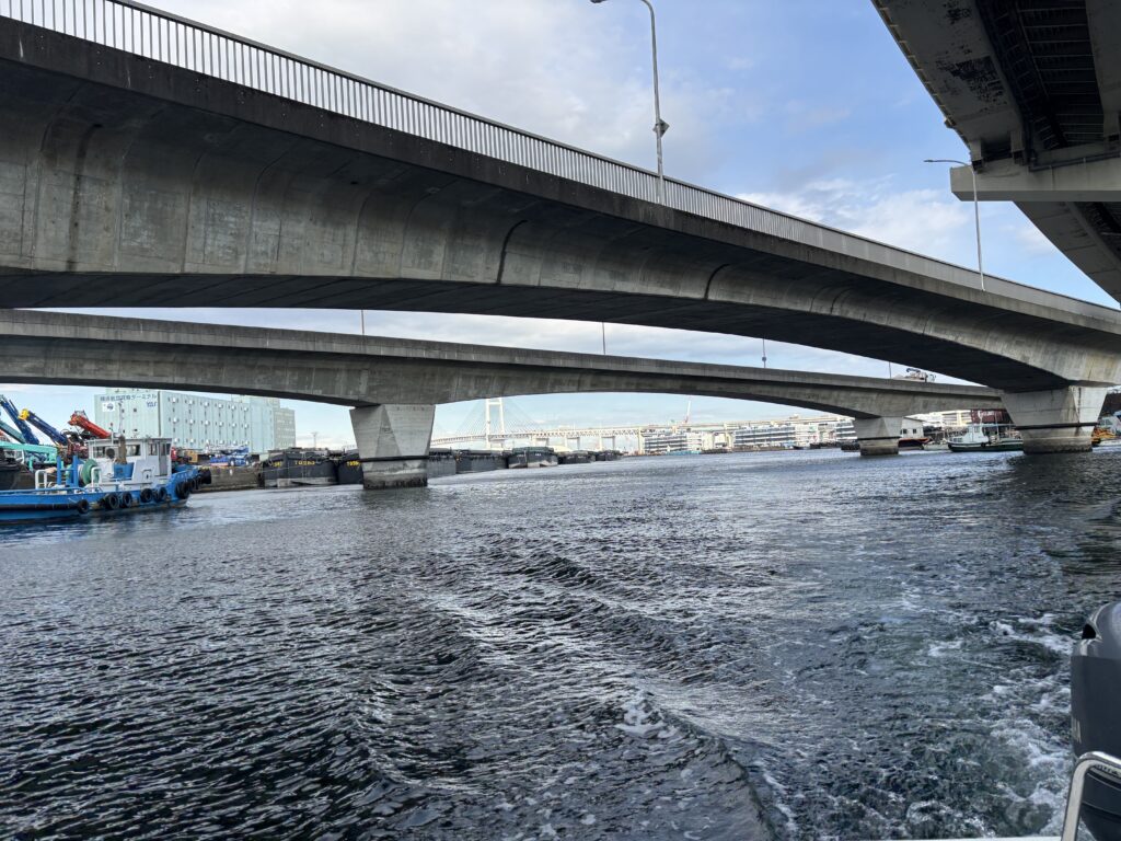 運河の上は首都高速神奈川3号狩場線が走っています🚗🛻🚛🚌