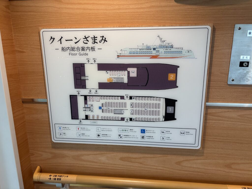 行きの高速船はこちら「クイーンざまみ」🛳️