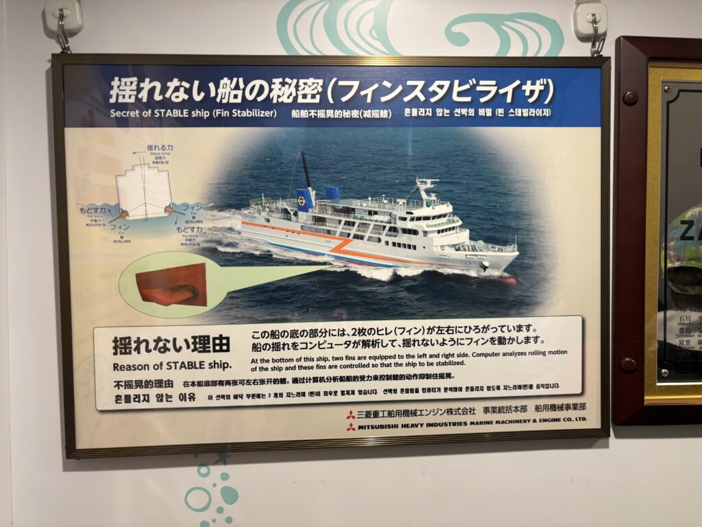 「フェリーざまみ3」には、横揺れ軽減装置 フィンスタビライザー が搭載されています。