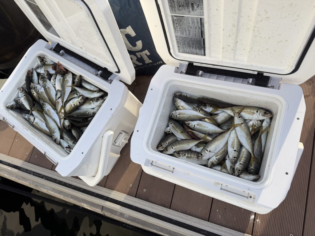 途中ランチ休憩でベイサイドに戻る頃には、クーラーボックス2個がパンパンに!