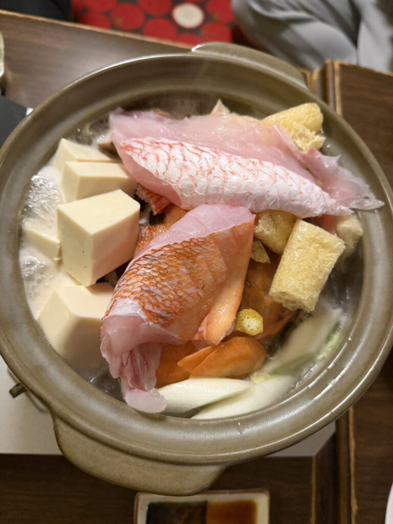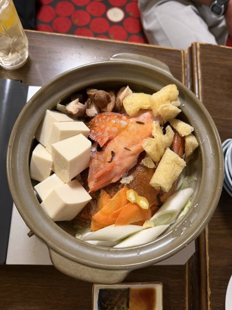 (お刺身を追加で頂きしゃぶしゃぶして食べましたが、カサゴは火が通ってふわふわで美味しかったです。)