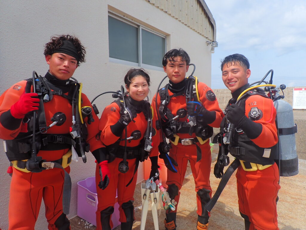 ※ドライスーツとは・・・首や手首が密着し、ブーツまで一体化した完全防水のダイビングスーツで、内部に水が浸入せず、スーツ内の空気層で保温するため、冬場や冷たい海でも快適にダイビングが楽しむことができます🤿