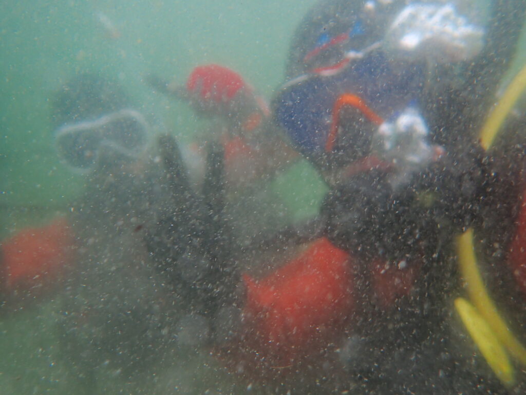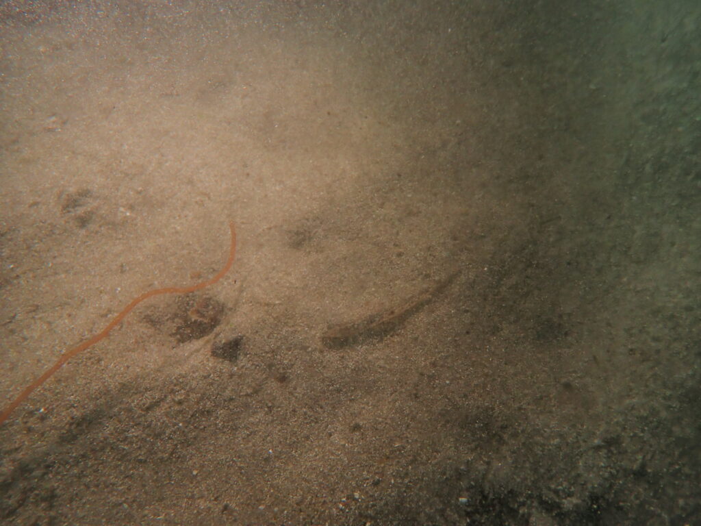 昨日に引き続き透視度があまりよくなく、お魚さんにはあまり出会えませんでしたが、松本峻がハゼを発見!