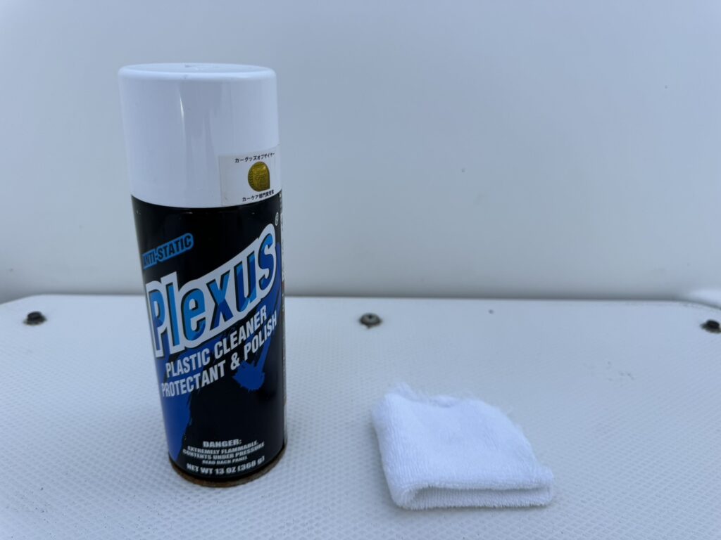 行ったのは、”操船席まわりの黒ずみ汚れの除去”。