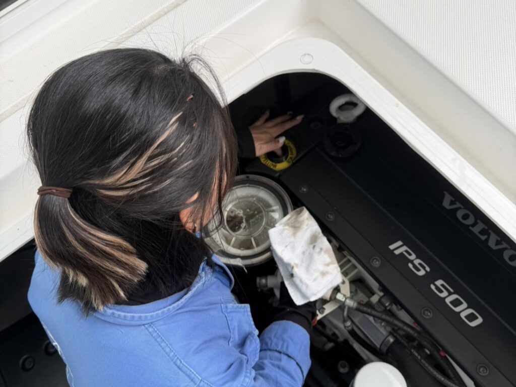 EXLUT36様 始動前点検【赤川】サポートサービス, 船体メンテナンス / レグルスマリン01 明日のEXLUT36様の出港に合わせて、始動前点検を行いました。 点検内容は、 ・エンジンオイル量 ・クーラント液量 ・Vベルトの張り具合の確認 ・IPSギアオイル量及び白濁の有無 ・エンジン周りのチェック・バッテリー […] EXLUT36様 始動前点検【赤川】 続きを読む »