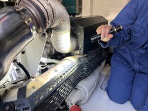 専門スタッフが、エンジン・機関部・操船装置・法定備品などを中心に、