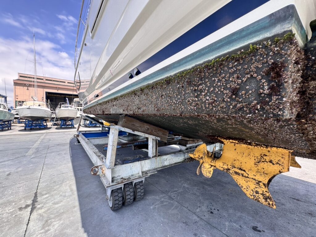 海上係留中の艇は、フジツボなどの付着を避けることができません。
